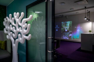 Moderni ja raikasilmeinen labimme muuntuu moneen tarkoitukseen. Labissa on kolme erillistä tilaa: ns. sylinteritila, tutkimushuone ja neuvottelutila, jossa on myös showroom-esittelytilaa yrityksille.